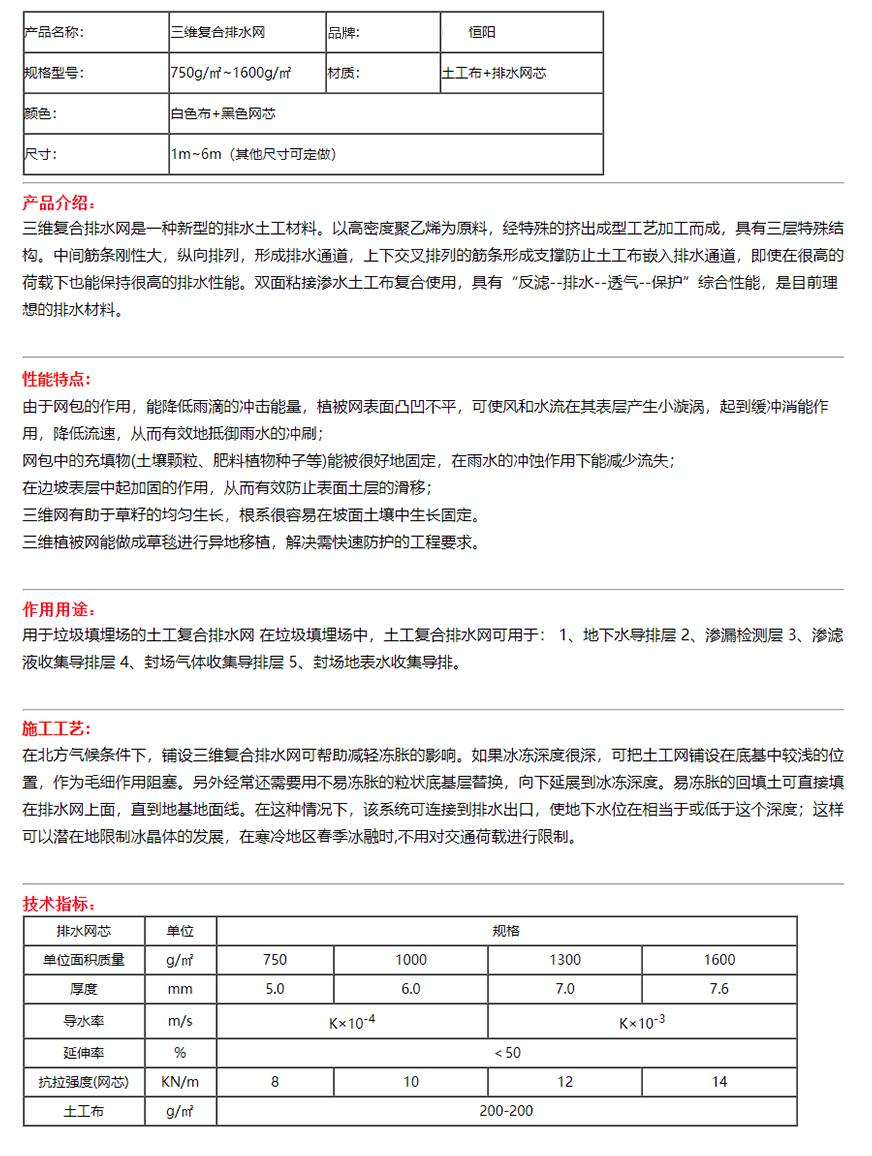 三维复合排水网